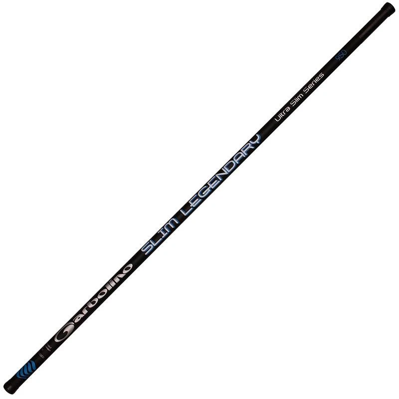 Cette canne est disponible en version 8m00, elle est composée de 6 brins et affiche 410 gr. En version 9m50, 7 brins, elle ne pèse que 560 gr, un véritable poids plume. Cette canne fera merveille sur les pêches au coup traditionnelles en étang, canal et rivière lente. Le must pour les adeptes des pêches à la graine à la recherche d’une canne réactive et très maniable. Construite en Carbone HM (Haut Module). La SLIM LEGENDARY est également disponible en version POWER. Sur cette version nous avons modifié le kit de la canne. Cela lui confère plus de puissance et lui permettra d’être un allié précieux sur les pêches de beaux poissons en toutes situations.