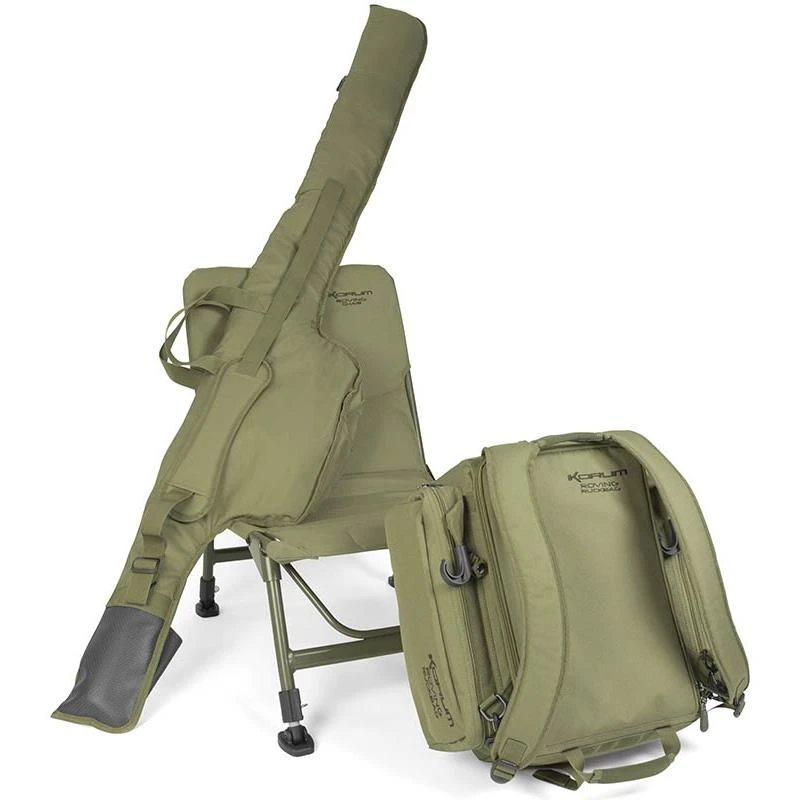 Optimiser le poids et l’encombrement sont une part importante du pêcheur de specimen moderne, nous avons donc revu notre Roving Kit pour cela. Inclus dans le kit une superbe et confortable chaise “Roving”, un sac compact “Roving Ruckbag” et un fourreau “2 Rod Roving Sling” qui est assez large pour loger des cannes équipées d’anneaux larges. La chaise et le sac peuvent être transporté séparément, grâce à notre conception particulière qui permet de connecter les deux. C’est la solution parfaite pour rester mobile sans avoir à sacrifier la qualité et la fonctionnalité.